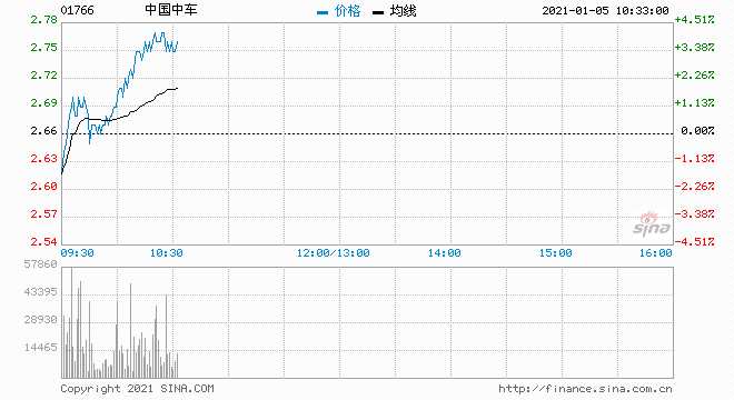 摘要: 大摩發(fā)布研究報(bào)告,估計(jì)中國(guó)中車(601766,股吧)(01766)未來60日內(nèi),有70%至80%機(jī)會(huì)股價(jià)會(huì)上升,目標(biāo)價(jià)6港元,評(píng)級(jí)“增持”。
