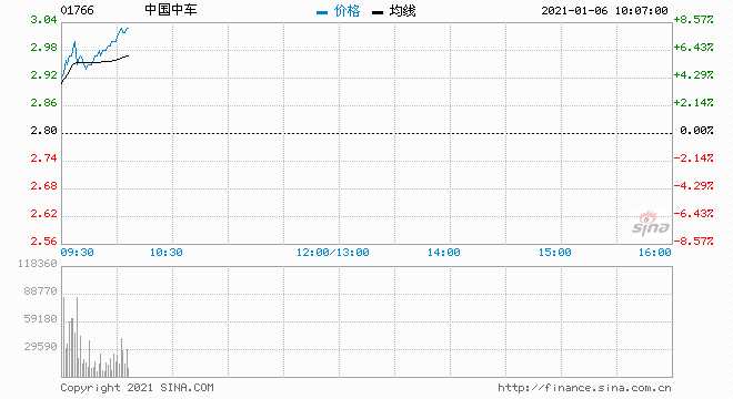 1月5日消息,中國中車(601766,股吧)漲8.57%,現(xiàn)報(bào)3.04港元,最新市值872.45億港元。