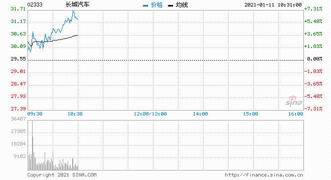 1月11人消息,長(zhǎng)城汽車A股漲超9%,報(bào)46.46元;H股漲近6%,報(bào)31.3港元,此前公布全年銷售超111萬輛創(chuàng)歷史新高。