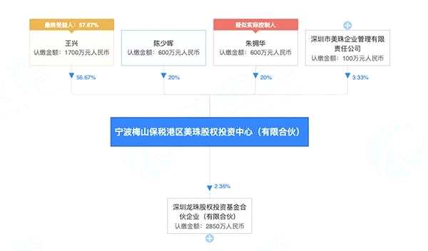 這是美團(tuán)龍珠資本旗下的基金。股權(quán)信息顯示,寧波梅山保稅港區(qū)美珠股權(quán)投資中心(有限合伙)持有深圳龍珠股權(quán)投資基金2.36%的股份。而美珠股權(quán)投資中心即美團(tuán)龍珠資本的主體,最終受益人為持股超過50%的王興,實(shí)際控制人為美團(tuán)龍珠資本創(chuàng)始合伙人朱擁華。