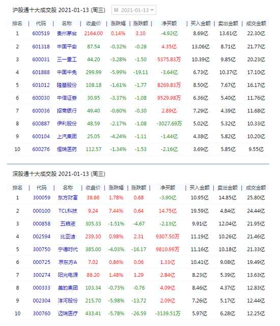摘要: 1月13日消息,北向資金凈買入27.12億元,今日凈買入TCL科技14.75億元、中國(guó)平安4.35億元,凈賣出貴州茅臺(tái)(600519,股吧)4.92億元、東方財(cái)富(300059,股吧)3.90億元。
