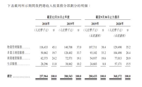 公司主要包括四大業(yè)務(wù),物管服務(wù)比重35.2%,占比最大;此外還包括非業(yè)務(wù)增值服務(wù)、商業(yè)云因服務(wù)、生活服務(wù)。公司整體毛利率有所提升,目前為44.9%