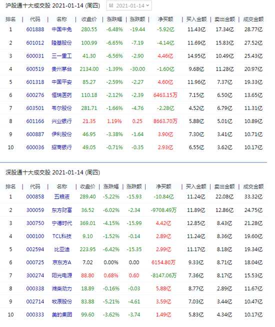 摘要: 1月14日消息,北向資金凈買入51.07億元,今日凈買入濰柴動(dòng)力5.88億元、中國(guó)平安4.60億元,凈賣出五糧液(000858)10.84億元、中國(guó)中免5.92億元。