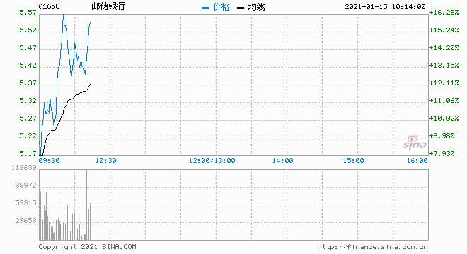 內(nèi)銀股全線暴漲 郵儲銀行漲超10%招商銀行漲近7%