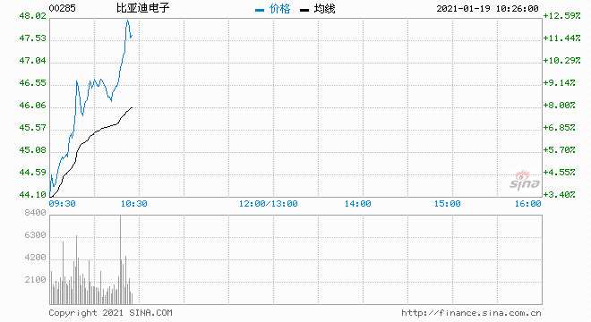 摘要: 1月19日消息,港股蘋果概念股漲幅擴(kuò)大,比亞迪(002594,股吧)電子漲10.20%,丘鈦科技漲6.25%,舜宇光學(xué)科技漲5.76%。