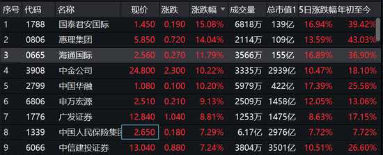 中資券商股爆發(fā):國(guó)泰君安國(guó)際漲超15%海通國(guó)際漲12%