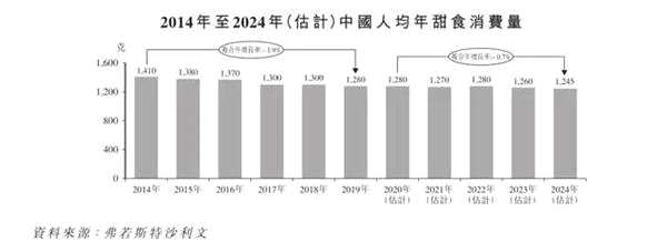 此外,我國人均甜食消費(fèi)量自2014年起呈現(xiàn)輕微下降趨勢,預(yù)計(jì)2020年至2024年的復(fù)合年增長率約為-0.7%。