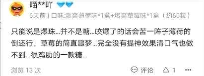 值得注意的是,消費(fèi)者對(duì)于“酷莎爆珠”的評(píng)價(jià)也是褒貶不一。在久久王食品天貓專營店的消費(fèi)者評(píng)論一欄中,消費(fèi)者對(duì)該產(chǎn)品的喜愛程度參差不齊: