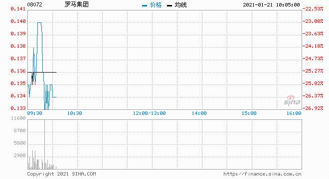 1月21日消息,羅馬集團(tuán)今日復(fù)牌,現(xiàn)跌26.37%,報(bào)0.134港元,最新市值0.24億港元。