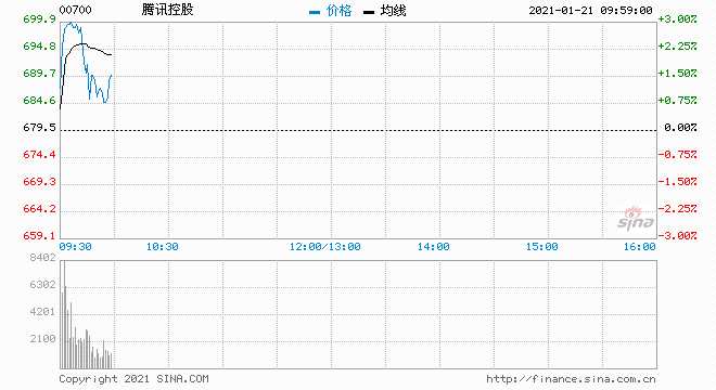 摘要: 1月21日消息,騰訊控股一度漲3%,股價(jià)站上700港元?jiǎng)?chuàng)下歷史新高,總市值突破6.7萬億港元。