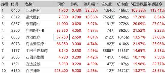 醫(yī)藥股爆發(fā),四環(huán)醫(yī)藥漲超32%,醫(yī)藥首只翻倍股誕生。遠(yuǎn)大醫(yī)藥、康哲藥業(yè)、啟明醫(yī)療集體大漲。