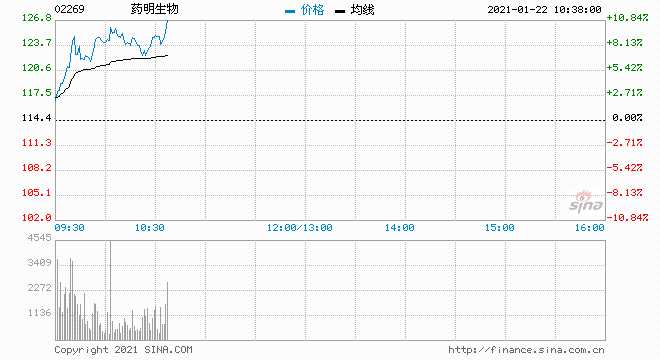 建銀國(guó)際發(fā)布研究報(bào)告,將藥明生物(02269)目標(biāo)價(jià)由65.7港元上調(diào)113%至140港元,重申“優(yōu)于大市”評(píng)級(jí)。截至9時(shí)49分,漲7.08%,報(bào)價(jià)122.5港元,成交額7.2億。
