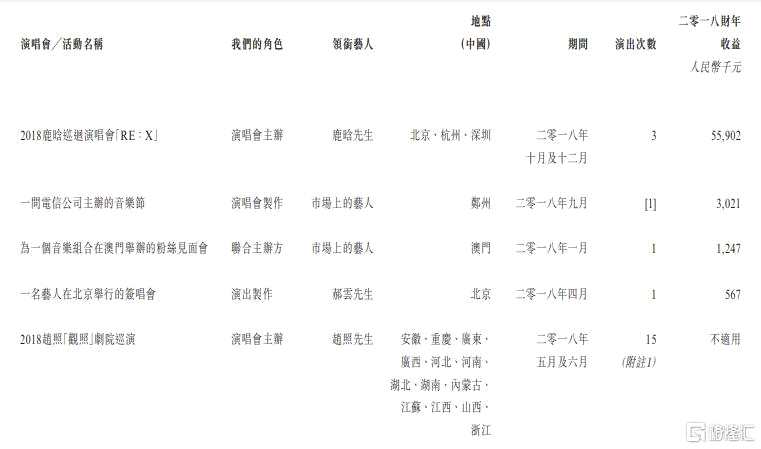圖:公司部分藝人演唱會收入