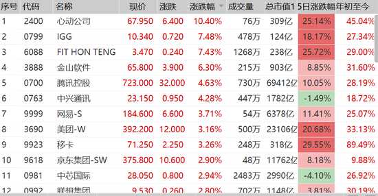 1月25日消息,南下公募基金機(jī)構(gòu)抱團(tuán)騰訊、美團(tuán)等科技股,恒生科技指數(shù)大漲1.43%,欲挑戰(zhàn)1萬點(diǎn)大關(guān)。其中,心動(dòng)公司漲10%,IGG、金山軟件漲超6%,騰訊漲5%,報(bào)價(jià)723港元,市值6.96萬億,逼近9000億美元;美團(tuán)漲超3%,市值2.3萬億港元,逼近3千億美元大關(guān)。