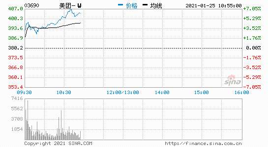 新浪科技訊 1月25日上午消息,美團盤中股價漲超5%,股價首次站上400港元,市值超23000億港元。
