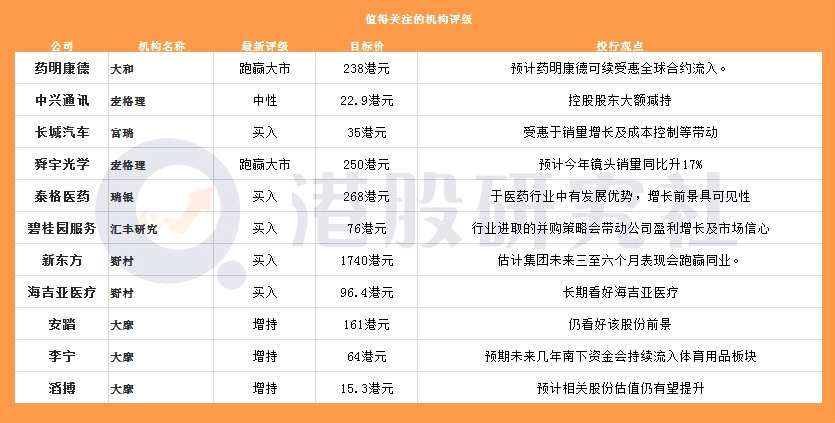 今日機(jī)構(gòu)評(píng)級(jí)匯總