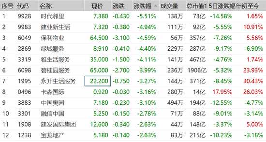 物業(yè)股集體走跌:時(shí)代鄰里跌5.5% 保利物業(yè)跌超4%