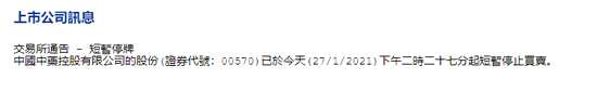 摘要: 1月27日消息,中國中藥在港交所停牌,停牌前漲超6%。此前有消息表示,國藥控股牽頭的財團計劃私有化中國中藥。