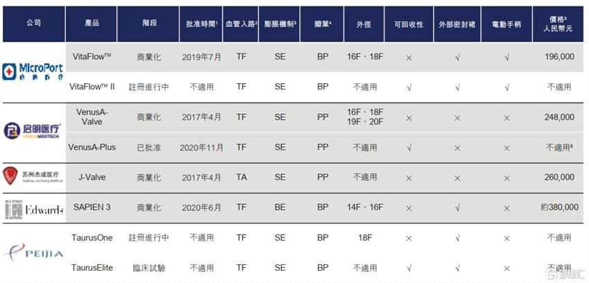 圖表四:中國進入臨床試驗或商業(yè)化階段的主要TAVI產品