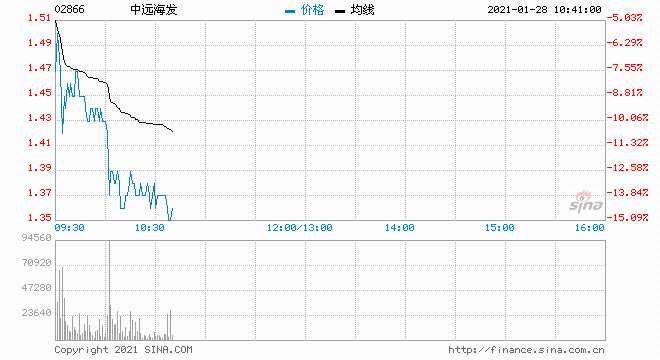 摘要: 中遠(yuǎn)海發(fā)(02866)公布,斥資31.04億元收購集裝箱制造業(yè)務(wù)。該股A股今日復(fù)牌跌停,H股跌超14%。截至發(fā)稿,跌13.84%,報1.37港元,成交額1.43億港元。
