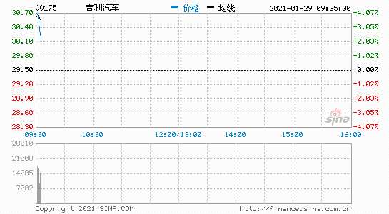 摘要: 查看最新行情新浪科技訊1月29日上午消息,吉利汽車港股高開超3%。截至發(fā)稿,吉利汽車港股上漲3.6%,報30.6港元每股,市值月3000億港元。