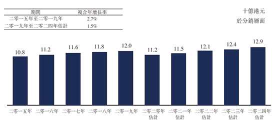 圖表三:香港健康保健品市場(chǎng)規(guī)模