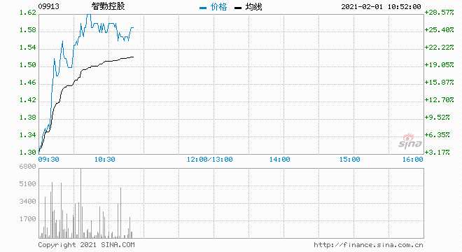 智勤控股(9913.HK)高開(kāi)高走,盤(pán)中高見(jiàn)1.65港元?jiǎng)?chuàng)歷史新高,現(xiàn)報(bào)1.58港元,大漲25.4%,暫成交1200萬(wàn)港元,最新總市值15.8億港元,該股今年迄今已累漲超2.4倍。