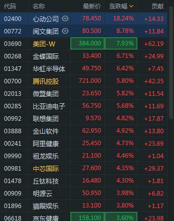 2月1日消息,恒生科技指數(shù)午后漲幅擴(kuò)大至4%,心動(dòng)公司漲超18%,閱文集團(tuán)漲近9%,美團(tuán)漲近8%,騰訊漲近6%,比亞迪(002594,股吧)電子漲5.68%,中芯國(guó)際漲4.35%。