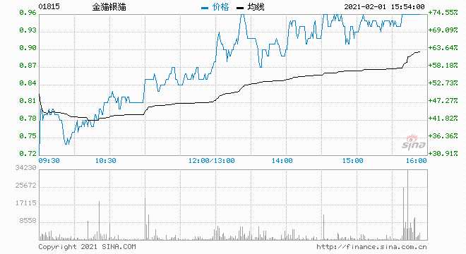 現(xiàn)貨白銀站上29美元/盎司,創(chuàng)去年8月11日以來(lái)新高,日內(nèi)暴漲7.5%。金貓銀貓(01815)早盤(pán)高開(kāi)逾14%,盤(pán)中漲幅擴(kuò)大,一度漲超74%,突破所有均線,創(chuàng)兩年來(lái)新高。截至14時(shí)45分,漲72.73%,報(bào)0.95港元,成交額達(dá)3048.48萬(wàn)。