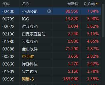 快訊:手游股集體走高 心動(dòng)公司漲超7%IGG漲近6%