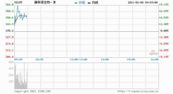 康希諾生物-B漲超9% 現(xiàn)報(bào)358.2港元