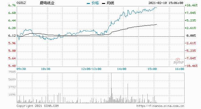 晨鳴紙業(yè)(01812)午后拉升逾9%,A股亦封漲停。截至發(fā)稿,H股漲8.17%,報6.62港元,成交額8016.27萬港元。
