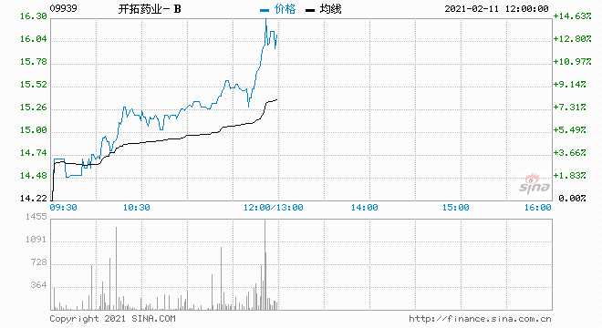 開拓藥業(yè)-B漲超10% 現(xiàn)報15.76港元