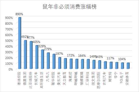 截至2月10日,非必須消費股中,電動車(新能源)雅迪暴漲了近9倍,新能源汽車股比亞迪、長城汽車沒動汽車、吉利汽車漲勢居前。餐飲股九毛九、海底撈、呷哺呷哺等全部翻倍,電子煙龍頭思摩爾漲143%,體育龍頭李寧、安踏翻倍。