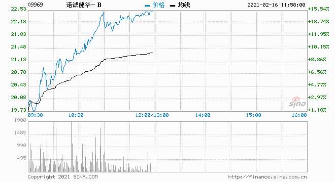 諾誠健華-B(9969.HK)大幅拉升至13.59%,高見22.65港元再創(chuàng)歷史新高價,總市值超330億港元。