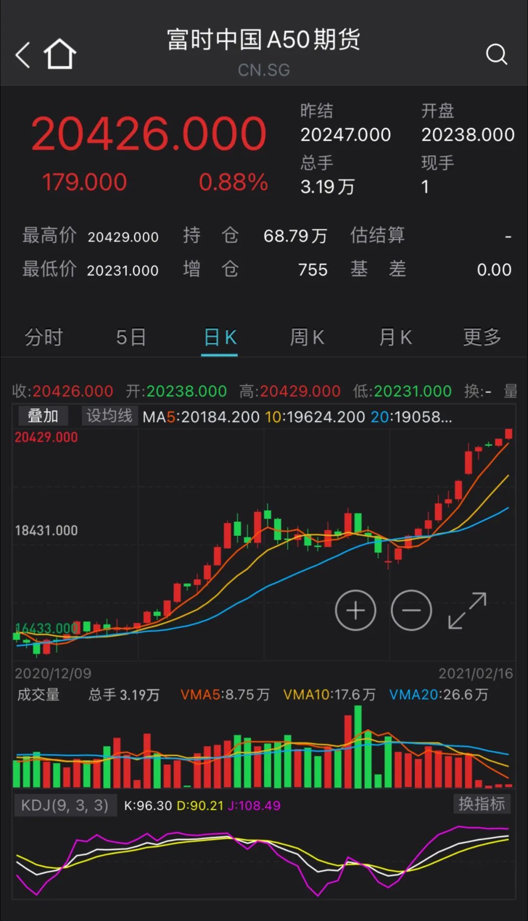 富時中國a50指數(shù)期貨上漲0.88%,報20426點。
