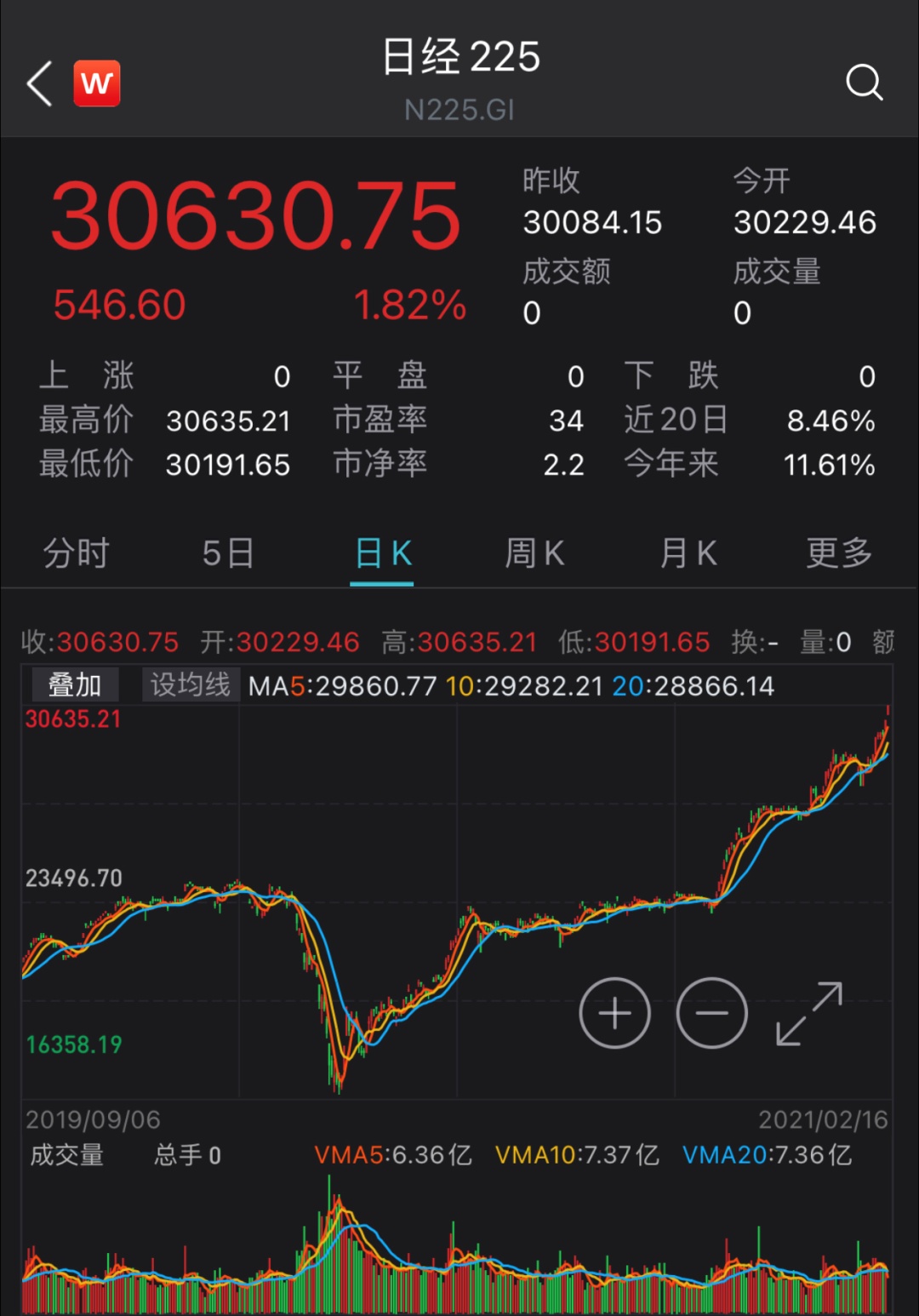 日經(jīng)指數(shù)1990年以來首次于昨日(2月15日)收復(fù)三萬點關(guān)口后,今日繼續(xù)上漲,截止發(fā)稿,漲幅1.82%,報30630.75點。