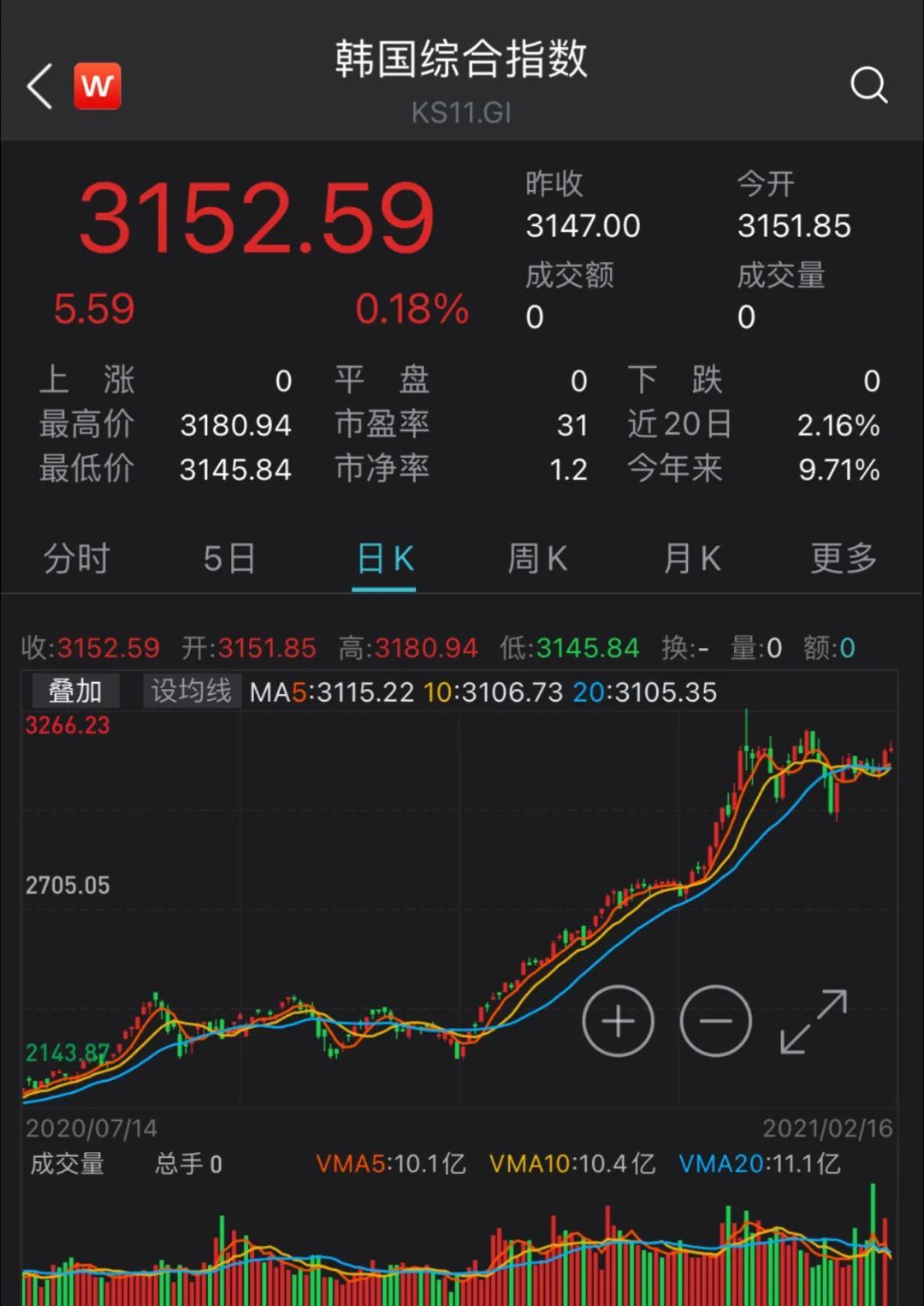 此外,截至16日記者發(fā)稿,韓國綜合指數(shù)上漲0.17%,報3152.44點。