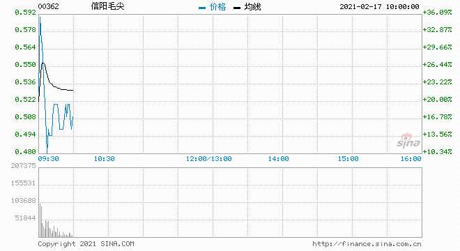 信陽毛尖大幅高開 現(xiàn)漲幅擴大至近22%