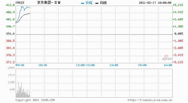 京東集團(tuán)(9618.HK)漲超2%,股價(jià)首次站上400港元關(guān)口。