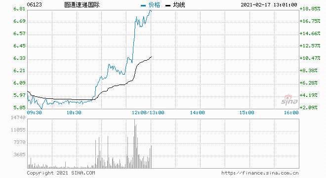 圓通速遞國(guó)際獲市場(chǎng)資金追捧 午前急升逾19%
