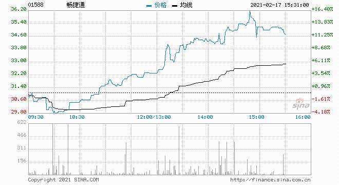 暢捷通(1588.HK)近期走勢(shì)十分強(qiáng)勢(shì),近一個(gè)月股價(jià)累計(jì)暴漲近3倍。現(xiàn)漲幅擴(kuò)大至14.15%,報(bào)35.5港元?jiǎng)?chuàng)2015年7月以來新高價(jià),總市值達(dá)77億港元。