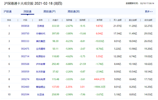 北上資金凈流入50.73億 五糧液凈買入9.87億