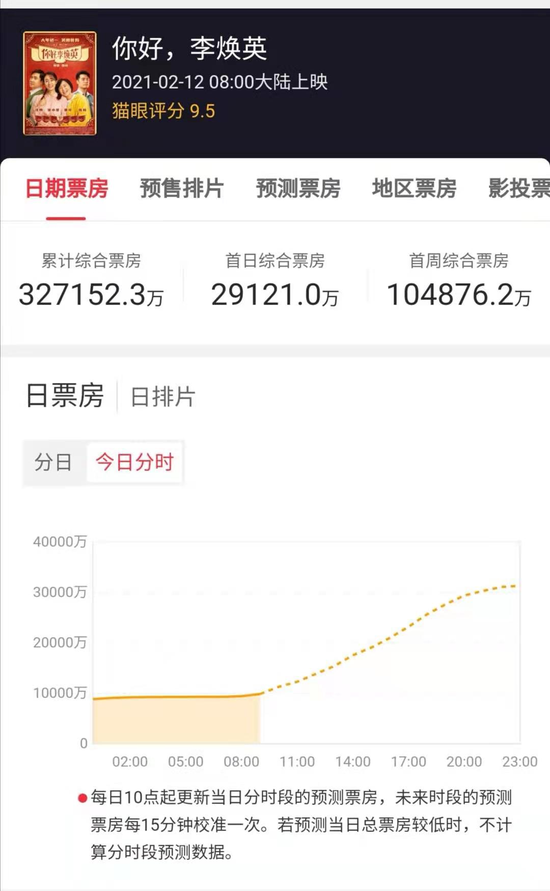 根據(jù)貓眼電影專業(yè)版預(yù)測,《你好,李煥英》的票房預(yù)計會達到52.81億元。北京文化、阿里影業(yè)等將成為最大受益方。