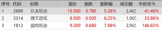 造紙股集體爆發(fā):理文造紙漲超6% 晨鳴紙業(yè)漲近8%