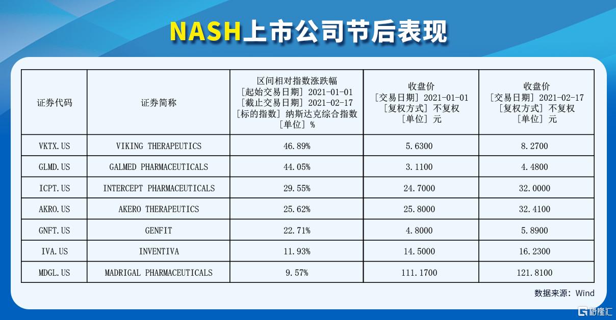 圖表一:2021年初至今主要NASH上市公司股價漲幅一覽