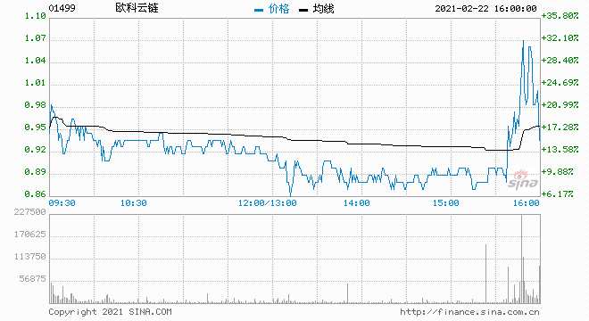 歐科云鏈尾盤(pán)拉升暴漲超40% 股價(jià)創(chuàng)逾3年新高