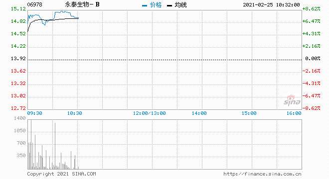 摘要: 永泰生物-B(6978.HK)大幅拉升至8.33%,報(bào)15.08港元,創(chuàng)7個(gè)月新高,4日累計(jì)大漲近30%,總市值77.6億港元。