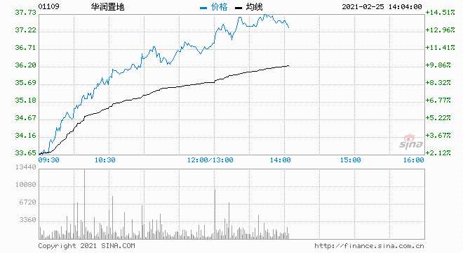 華潤(rùn)置地漲幅擴(kuò)大至超14% 創(chuàng)去年11月以來新高