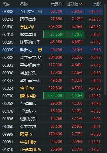 3月1日消息,恒生科技指數(shù)大漲3.57%,金山軟件漲近8%,阿里健康漲7.12%,美團(tuán)漲近7%,快手漲4.53%,騰訊漲4%,網(wǎng)易漲2.77%,小米漲2.37%。